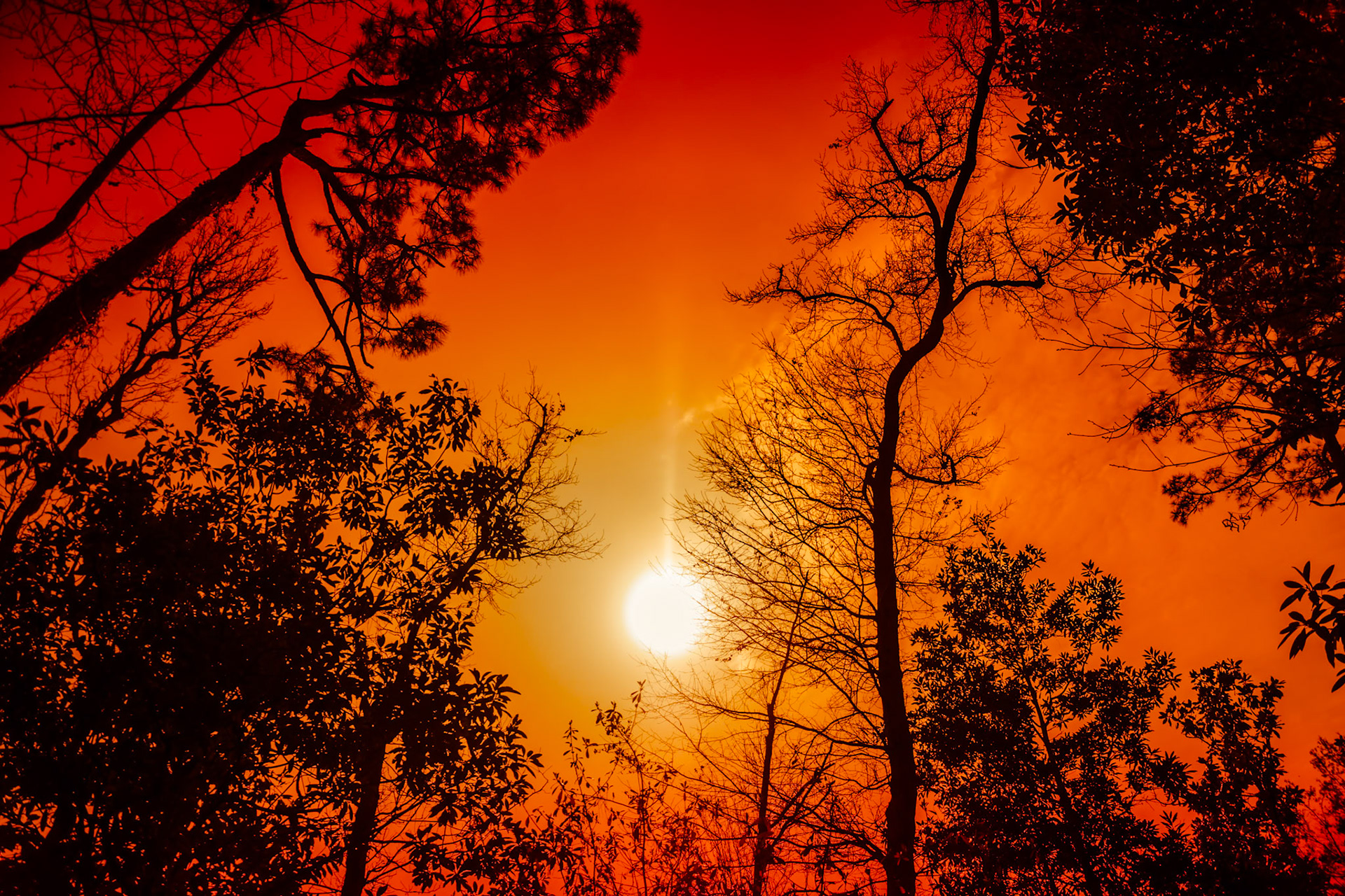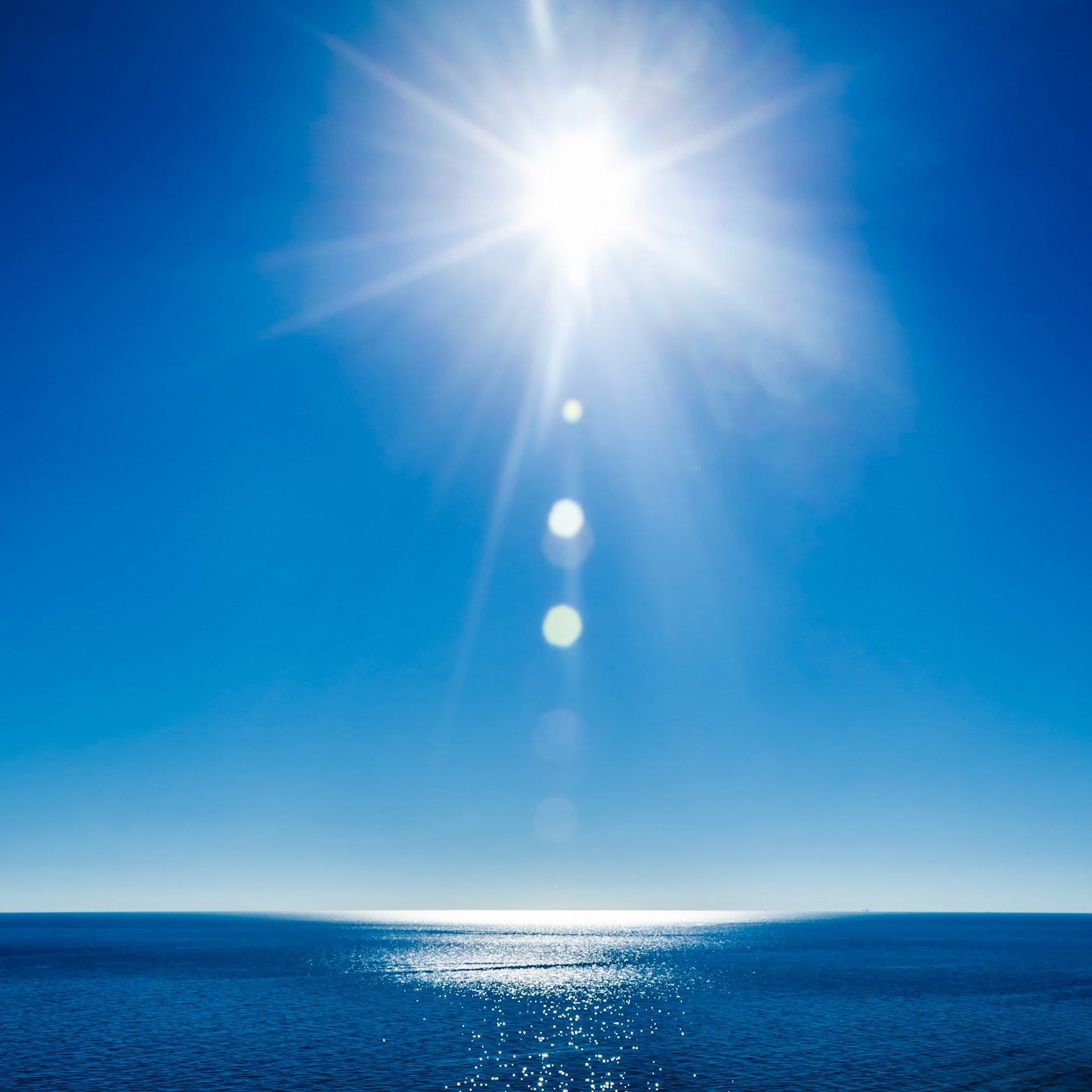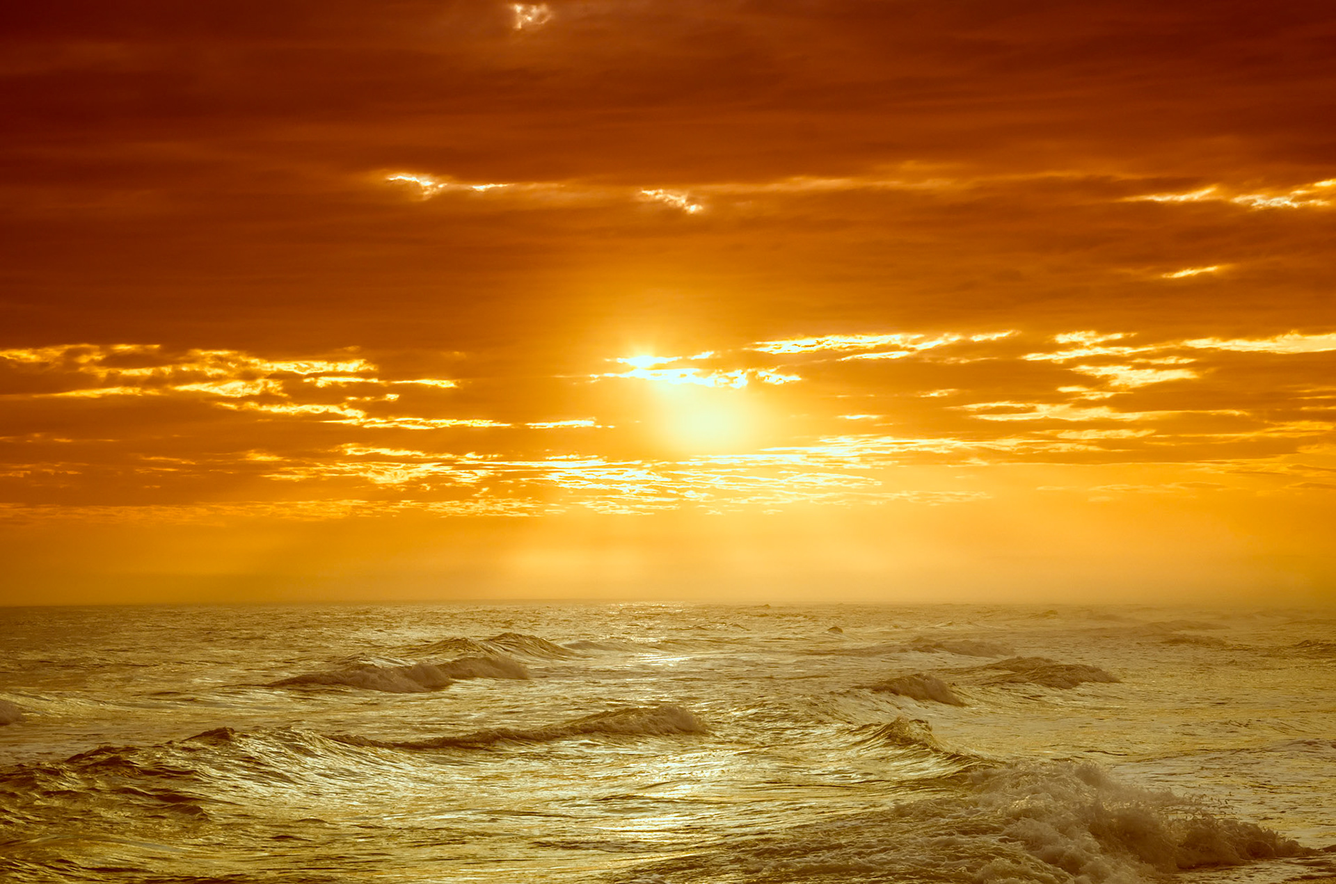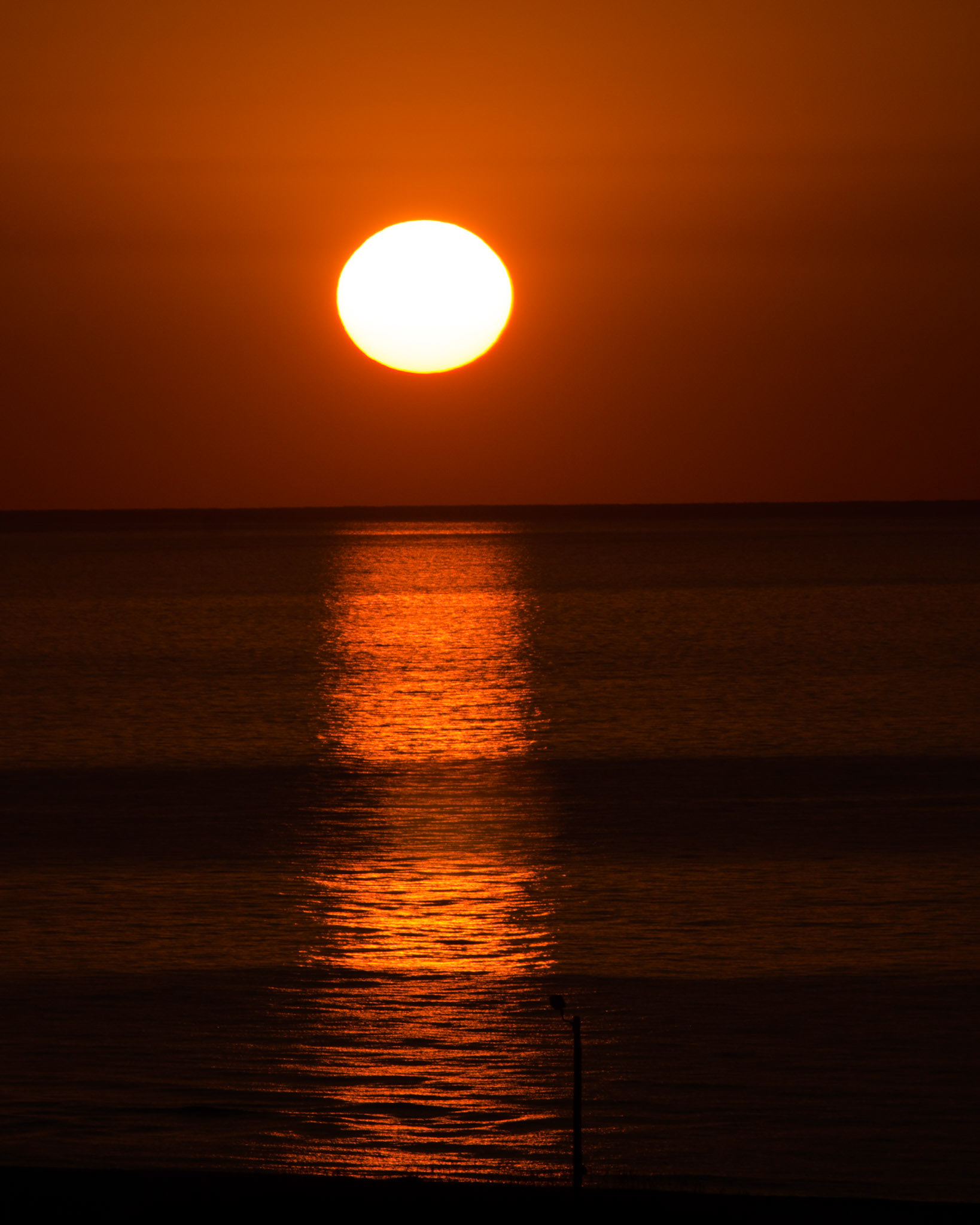 Fisheye lens shot of sunrise over Perdido Pass, Orange Beach, Alabama.