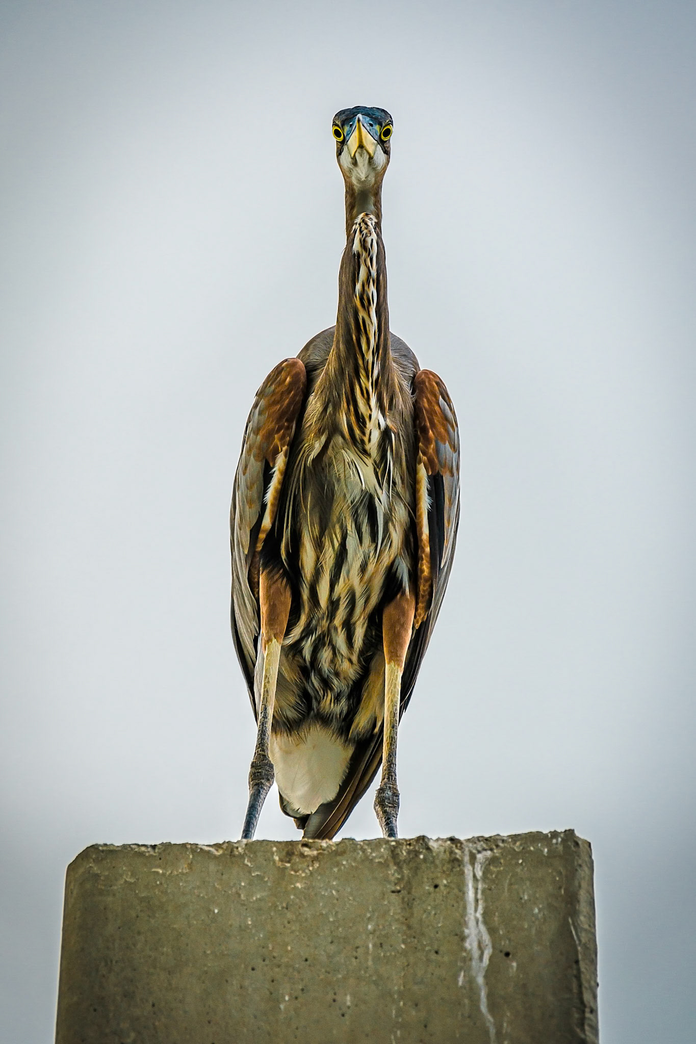 Heron hanging by fish cleaning station at Sportsman Marina dock. It's red snapper season.