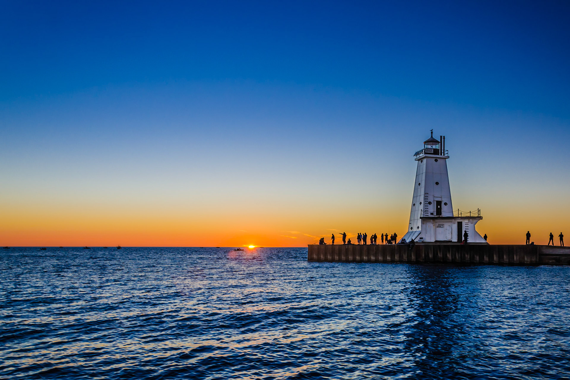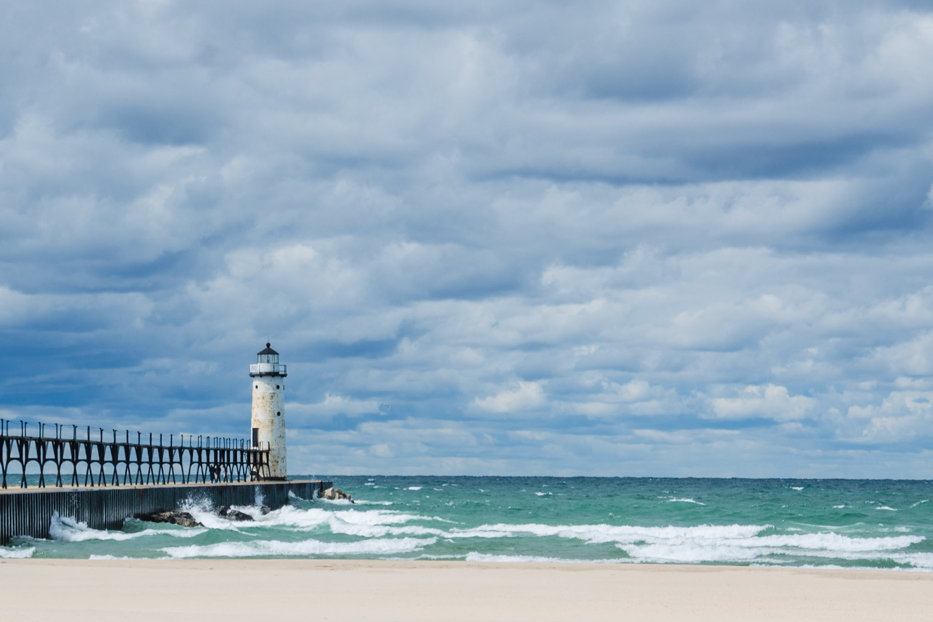 Under the catwalk at the lighthouse in Manistee, Michigan